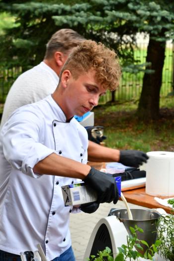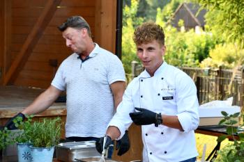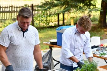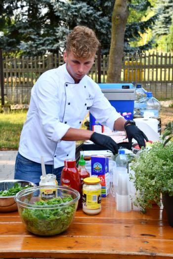 Wczoraj na terenie przy Domu Ludowym w Porębie Wielkiej Witold Mondry (mieszkaniec Poręby Wielkiej i zwycięzca 8. edycji Hell's Kitchen Polska) przeprowadził warsztaty kulinarne dla seniorów z Gminy Oświęcim.