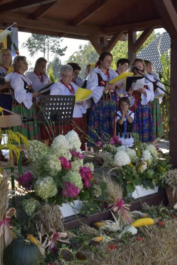 Kolejnym elementem obchodów Święta Polonów była część artystyczna, na którą złożył się występ pań z KGW w Harmężach. Była to, jak same określiły, prezentacja historyczna, ponieważ po raz pierwszy ich śpiew został ubogacony przez akompaniament akordeonu. Towarzyszył im Karol, uczeń Zespołu Szkolo-Przedszkolnego w Harmężach.