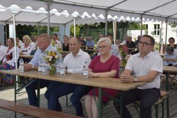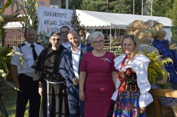 Wśród osób przybyłych do Harmęż na tegoroczne dożynki znaleźli się m.in.: wójt gminy Oświęcim Mirosław Smolarek wraz z małżonką, przewodniczący rady gminy Oświęcim Adam Nowotarski, radni gminni Daria Tyran i Aleksander Stachura, dyrektor OKSiR Gminy Oświęcim Weronika Sporysz oraz dyrektor Zespołu Szkolo-Przedszkolnego w Harmężach Bartłomiej Karolus. W tym dniu nie mogło również zabraknąć mieszkańców sołectwa.