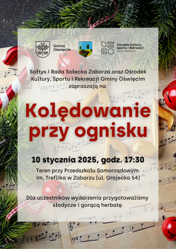 Wraz z Sołtysem i Radą Sołecką Zaborza serdecznie zapraszamy na Kolędowanie przy ognisku! To idealna okazja, aby wspólnie spędzić czas w noworocznej atmosferze!