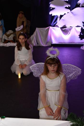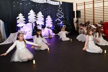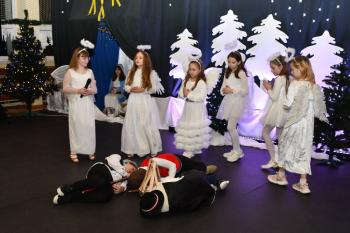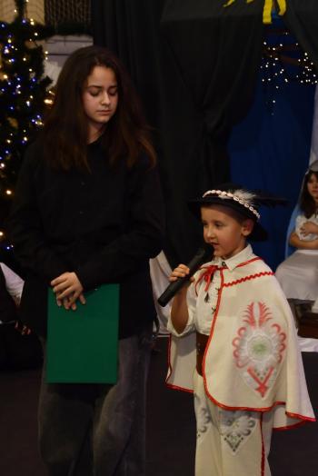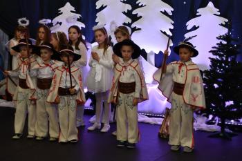 Dzieci zachwyciły publiczność swoimi występami, nie zabrakło również tradycyjnych jasełek, które wprowadziły wszystkich w świąteczny nastrój. Następnie wspólnie odśpiewaliśmy kolędy przy akompaniamencie Pana Humorka.
