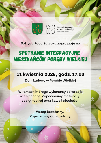 Sołtys wraz z Radą Sołecką serdecznie zapraszają na Spotkanie Integracyjne Mieszkańców Poręby Wielkiej.