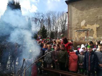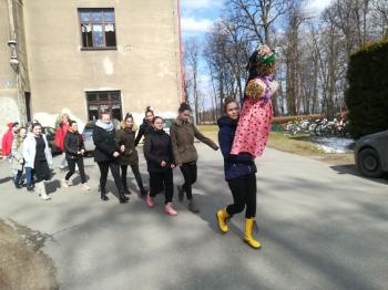 Po konkursie wszyscy udali się na szkolne podwórko po to, by pożegnać zimę symbolicznym topieniem marzanny. Dzięki wesołej atmosferze – mimo zimowej aury – wiosna była widoczna na twarzy każdego z przedstawicieli społeczności szkolnej.