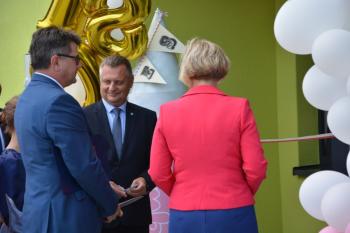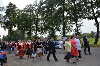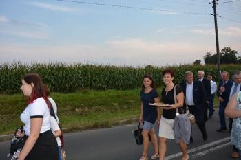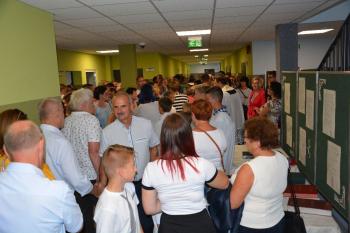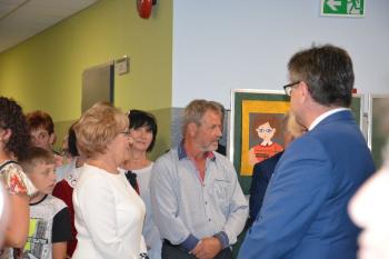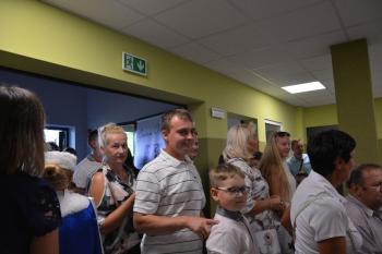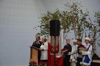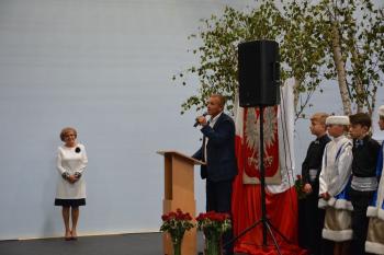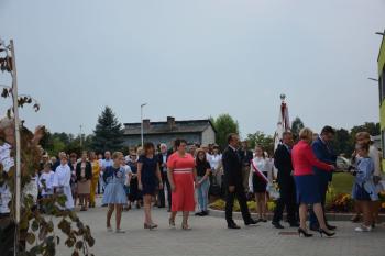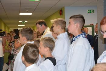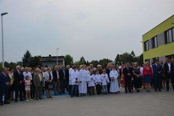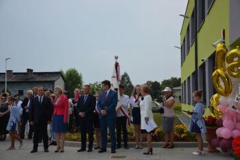 Po zakończonej mszy św. korowód na czele z Panią Dyrektor Małgorzatą Bucką ruszył w stronę budynku nowej szkoły. Pochód uświetniła orkiestra działająca przy OKSiR w Brzezince. Po symbolicznym przecięciu wstęgi, mury zostały poświęcone przez proboszcza: księdza Stanisława Sadlika. Na pięknej i przestronnej sali gimnastycznej rozpoczęły się przemowy. Pani Dyrektor podkreśliła tradycję, którą niesie ze sobą szkoła i jej patron: Artur Grottger. Powiedziała o sukcesach uczniów, a także zwróciła uwagę na dbanie o tradycję i pamięć o przodkach wśród społeczności. Pan Wójt Albert Bartosz przypomniał postać śp. Bronisława Jani, który to był pomysłodawcą i inicjatorem powstania nowej szkoły. Uroczystość uświetniła swoją obecnością także pani Barbara Nowak (Małopolski Kurator Oświaty).
