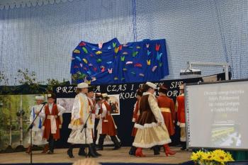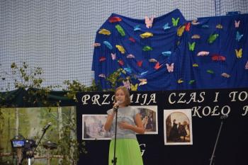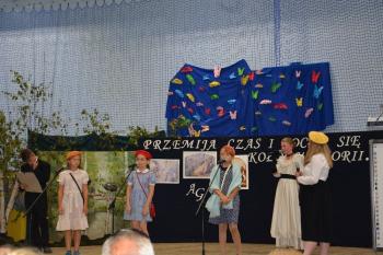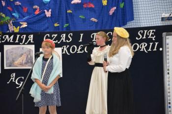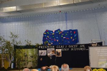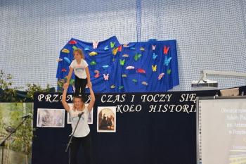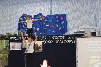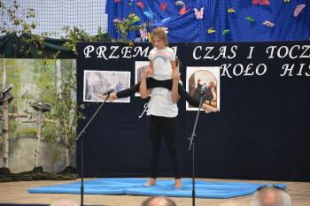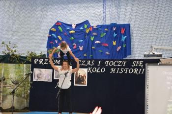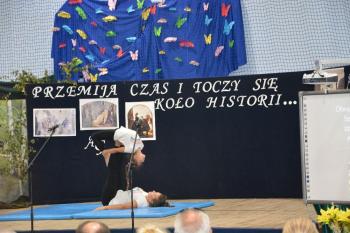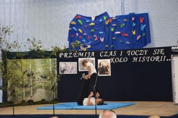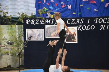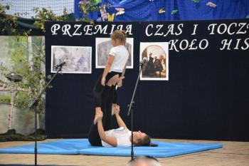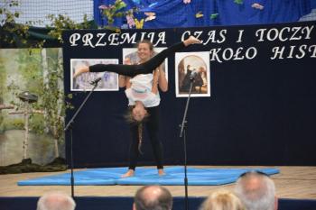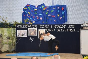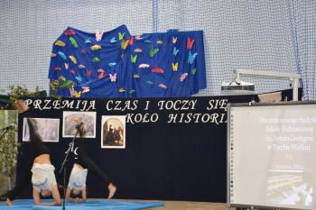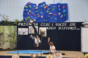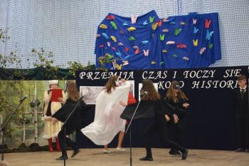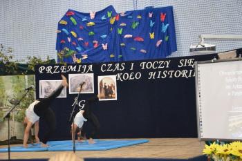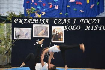 Po historycznym wstępie przenieśliśmy się do czasów współczesnych. Wanda i Artur oddali głos uczennicom. Zwróciły one uwagę na fakt zmieniających się czasów i zapowiedziały kolejne interesujące występy. Był między innymi pokaz akrobatyczny Sióstr Cinalskich, występy grupy artystyczno-muzycznej a także taniec nowoczesny.