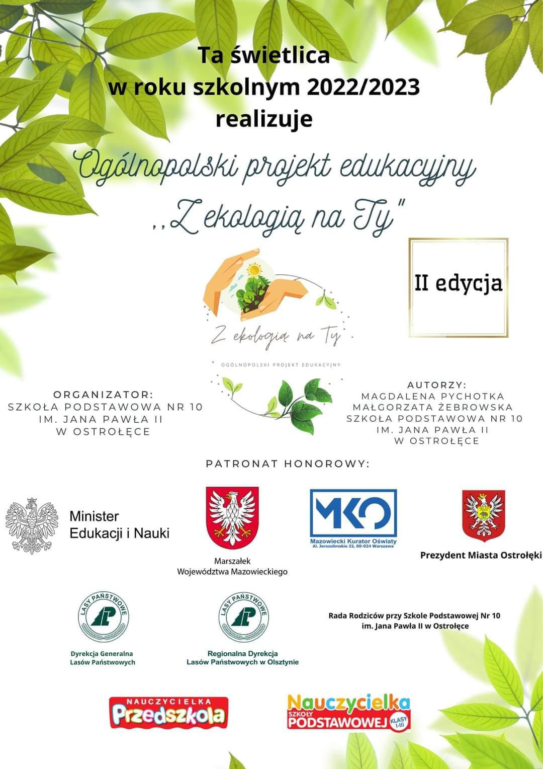 W tym roku szkolnym będziemy realizować zadania ogólnopolskiego projektu edukacyjnego „Z ekologią na Ty”. Podstawowym celem projektu jest uwrażliwienie młodego człowieka na problemy środowiska naturalnego, doskonalenie umiejętności samodzielnego poznawania zjawisk przyrodniczych, obserwacji i formułowania wniosków. Będziemy wykonywać zadania dotyczące otaczającej przyrody oraz pokazywać metody na życie w zgodzie z naturą