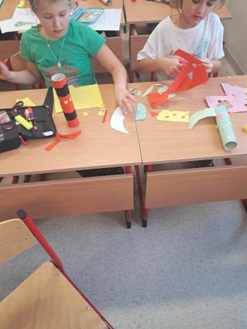 Dodatkowo dzieci wykonały pracę plastyczną „Zaczarowane buty” z wykorzystaniem rolek po ręcznikach papierowych oraz kolorowego papieru. Powstały kreatywne, barwne i pomysłowe prace, które wprowadziły wszystkich w magiczny andrzejkowy nastrój. Andrzejkowe spotkanie w świetlicy było pełne uśmiechu, radości i dobrej zabawy, pozostawiając uczniów w wyjątkowym nastroju i z nadzieją na spełnienie najpiękniejszych wróżb.