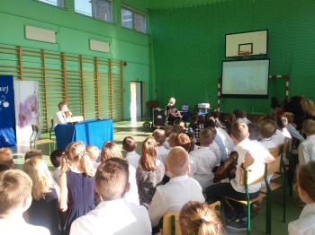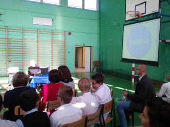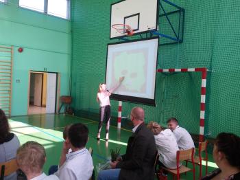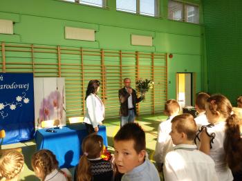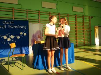 Z tej okazji uczniowie pod opieką pani Moniki Tur przygotowali humorystyczny występ artystyczny, po którym wręczyli wszystkim pracownikom szkoły drobne upominki.