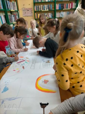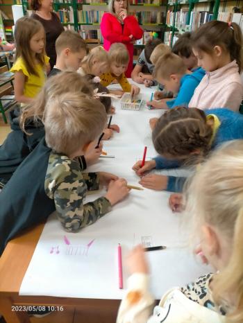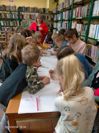 Pani Małgorzata Rozner jak zwykle miała dla nas przygotowane ciekawe zajęcia, w czasie których uczniowie w formie rysunków przedstawili swoje marzenia związane z wyposażeniem biblioteki. Propozycje dzieci były bardzo ciekawe począwszy od nowych książek po konsole do gier i słodycze, którymi na koniec zajęć zostali poczęstowani.