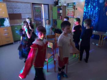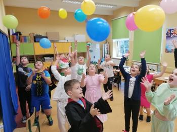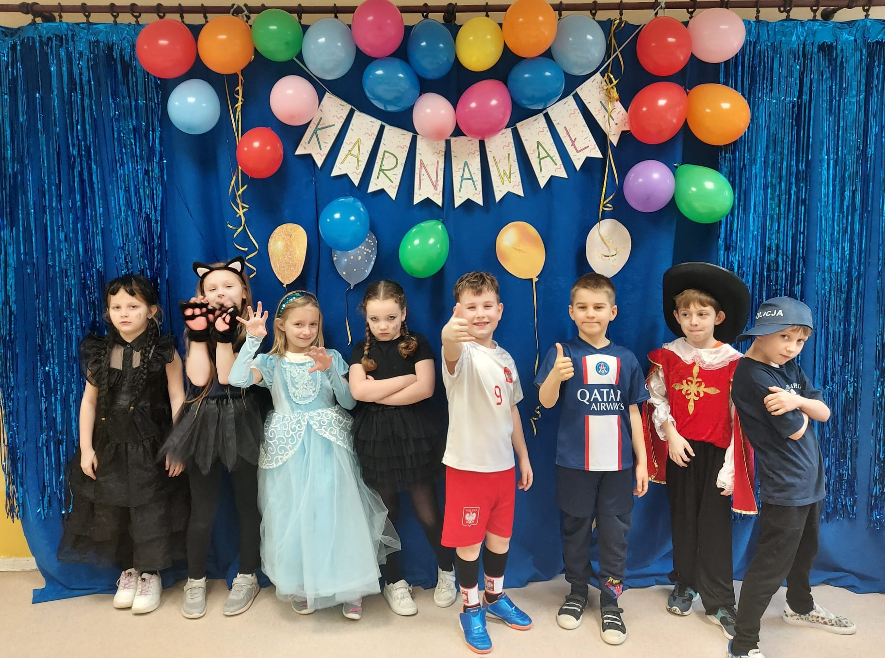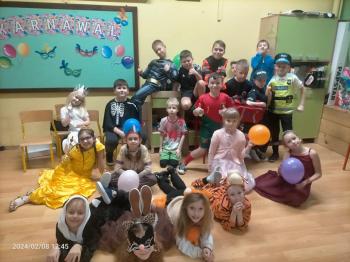 We czwartek przed feriami w klasach młodszych naszej szkoły odbyła się zabawa karnawałowa. Uczniowie pięknie przebrani, bawili się w rytm muzyki, a w wolnych chwilach delektowali się pysznymi słodkościami przygotowanymi przez rodziców. Dziękujemy!