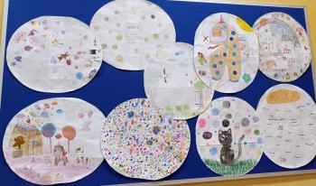 Każda klasa tworzyła swoje "kropkowe" dzieła sztuki.Kropki stały się symbolem odwagi w odkrywaniu swoich talentów i próbowaniu nowych rzeczy.
