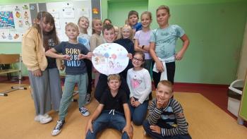 Zorganizowano również gry i zabawy integracyjne, które wprowadzały uczniów w atmosferę współpracy, twórczej ekspresji i budowania pewności siebie. Cała szkoła wypełniła się kolorami, a każdy uczeń mógł pokazać swój unikalny sposób na "kropkę".