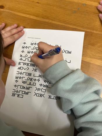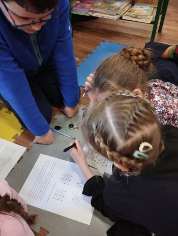 Podczas słuchania fragmentów książki "Hobbit, czyli tam i z powrotem" mogli wraz z głównym bohaterem rozwiązywać zagadki. Czekały na nich również tajemnicze szyfry oraz kalambury związane z postaciami z książki. Po słodkim poczęstunku, w dobrych humorach, wrócili do szkoły.