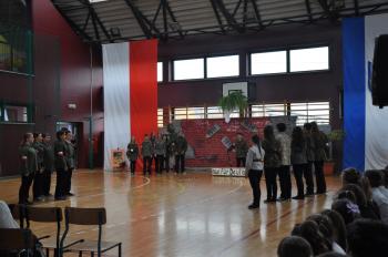 Spośród zaproszonych gości głos zabrał Sekretarz Gminy Oświęcim Pan Robert Dziuba oraz Dyrektor Gimnazjum Pani Wiktoria Czernicka-Białczyk. W swoich przemówieniach odwoływali się do historii walk niepodległościowych, działań konspiracyjnych mających na celu przywrócenie Polski na mapę Europy, a przede wszystkim do godnego podziwu patriotyzmu Polaków, których postawa stanowi wzór do naśladowania dla współczesnej młodzieży.
