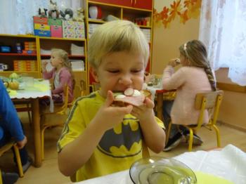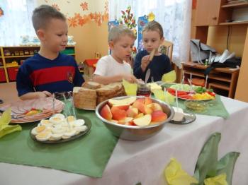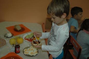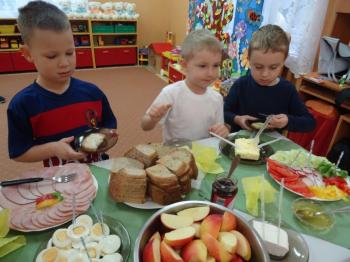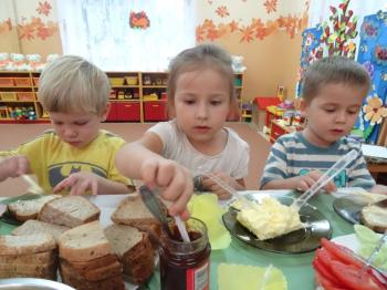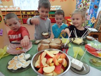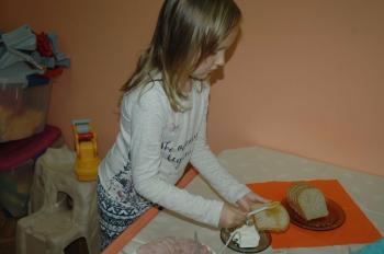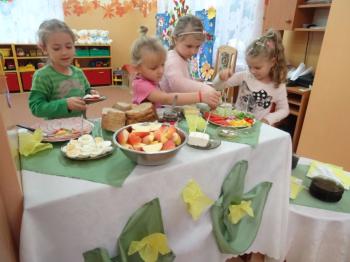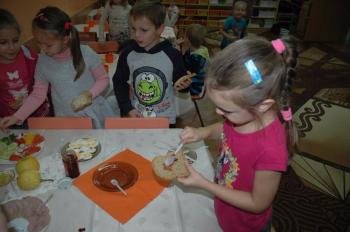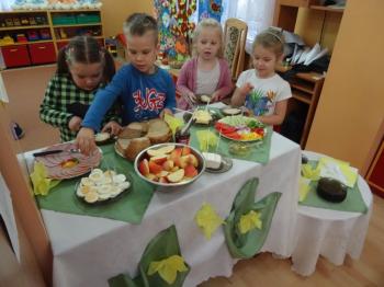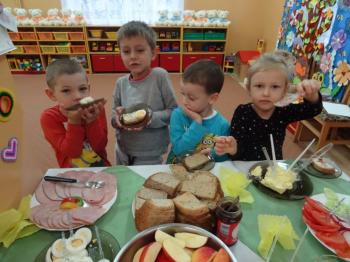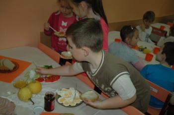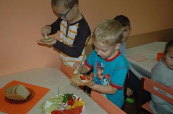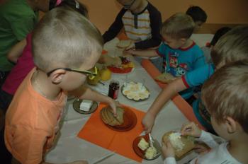 W trakcie śniadań w formie szwedzkiego stołu czy sporządzania „kanapki przedszkolaka” dzieci same komponują posiłek, wybierając te produkty, które najbardziej lubią ale także takie, które chcą spróbować. Przedszkolaki poznają równocześnie sposoby posługiwania się sztućcami oraz zasady kulturalnego zachowania przy stole.