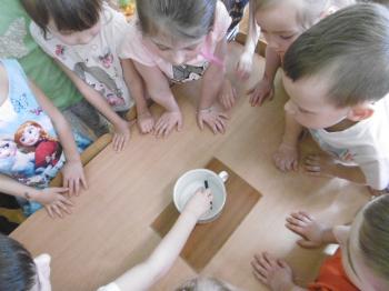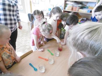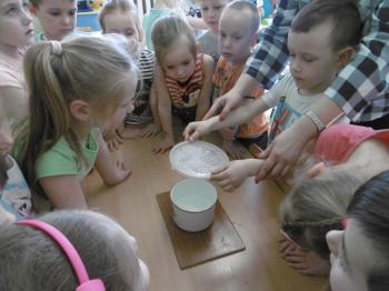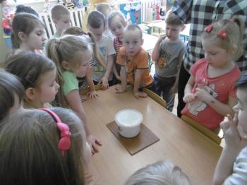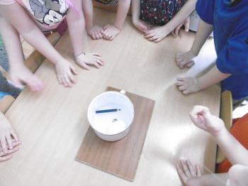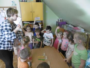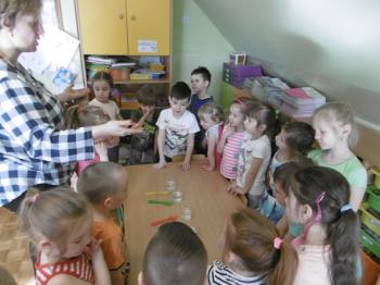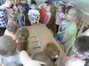 Na kółku przyrodniczym w marcu przedszkolaki utrwalały i wzbogacały wiedzę dotyczącą warunków na planecie Ziemia sprzyjających życiu człowieka. Dzieci poznały proces obiegu wody w przyrodzie, rodzaje zbiorników wodnych. Brały czynny udział w zabawie badawczej „Badam, odkrywam, wnioskuję”.