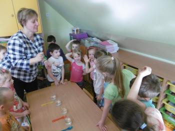 Przedszkolaki zdały sobie sprawę, że bez wody i tlenu nie byłoby życia na Ziemi oraz z faktu koniecznego oszczędzania wody i dbania o czystość powietrza.